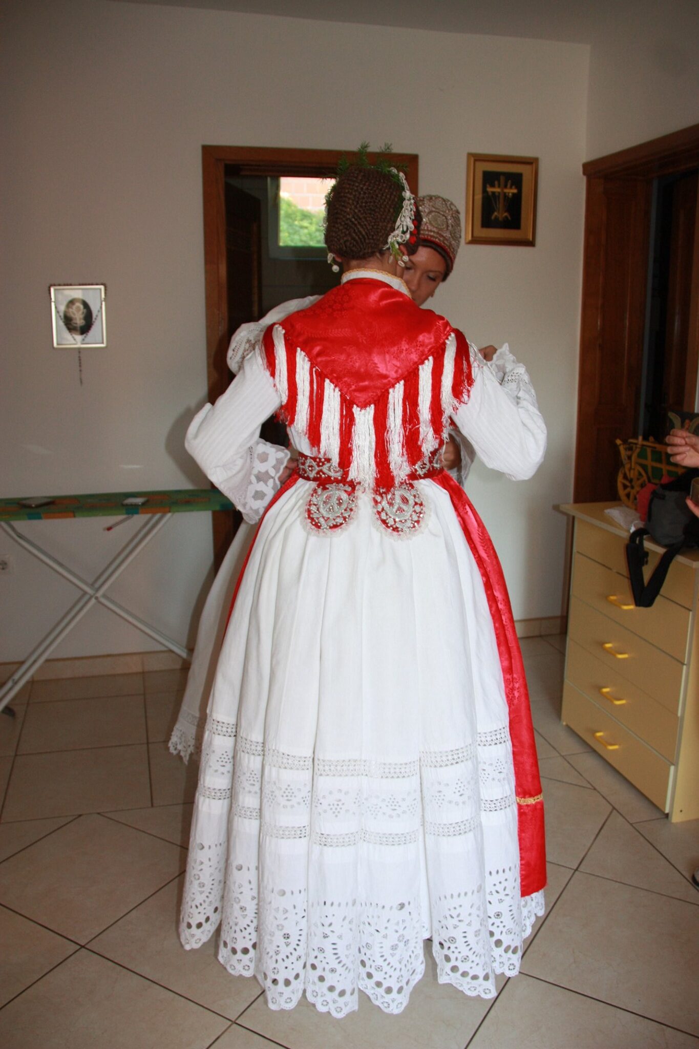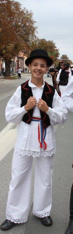 White Nosnja Shirt Black Vest White Pants Red – White – Blue tkanica (note the tkanica follows the Croatian Flag, red is on top) |