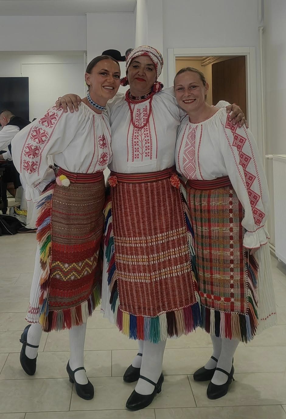 White Nosnja Shirt Black Vest White Pants red-white- blue tkanica that is wrapped around and pinned. Ends do NOT hang, do NOT tie. Note the tkanica follows the Croatian flag, red is on top. See picture. |